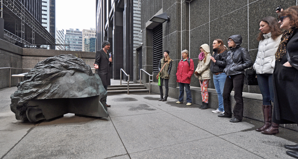 On a chilly and windy Saturday, Noel led the Jane’s Walk ‘Sculpture and the City’. The walk toured a variety of public art installations in the downtown core, challenging people to think about how these works contribute to our sense of community and place.
